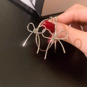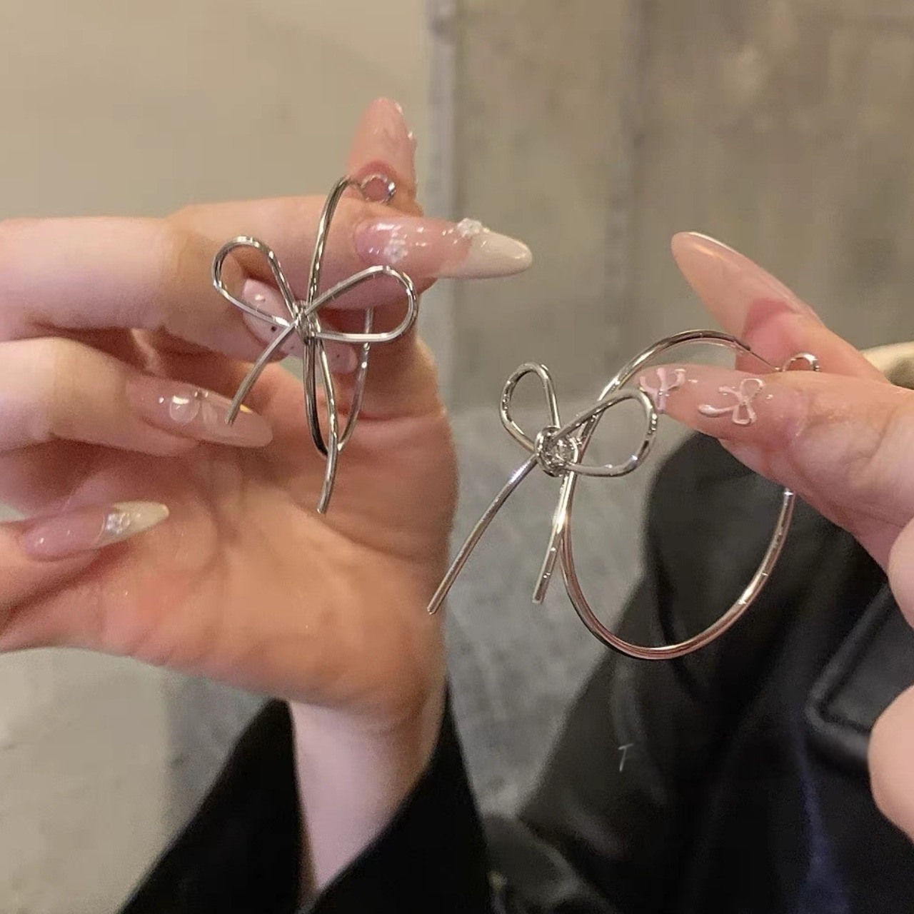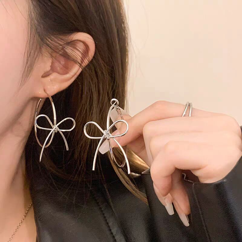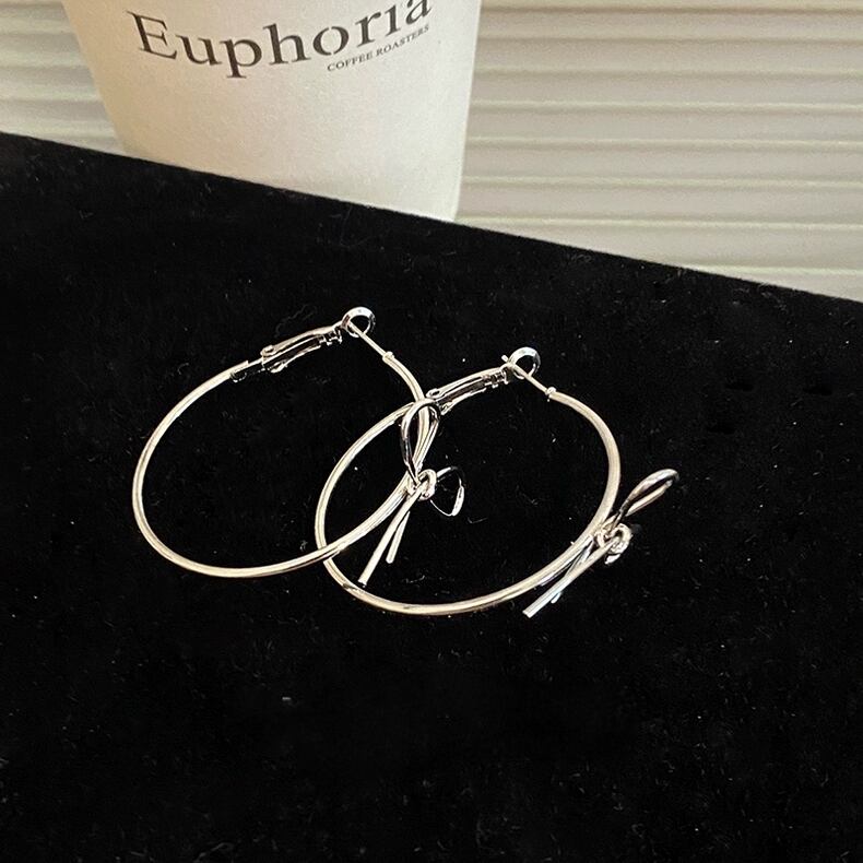 シルバーフープにリボンモチーフをあしらった