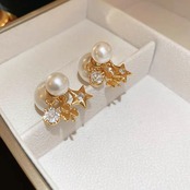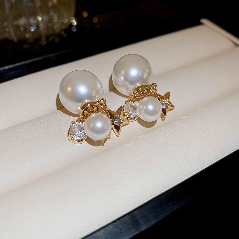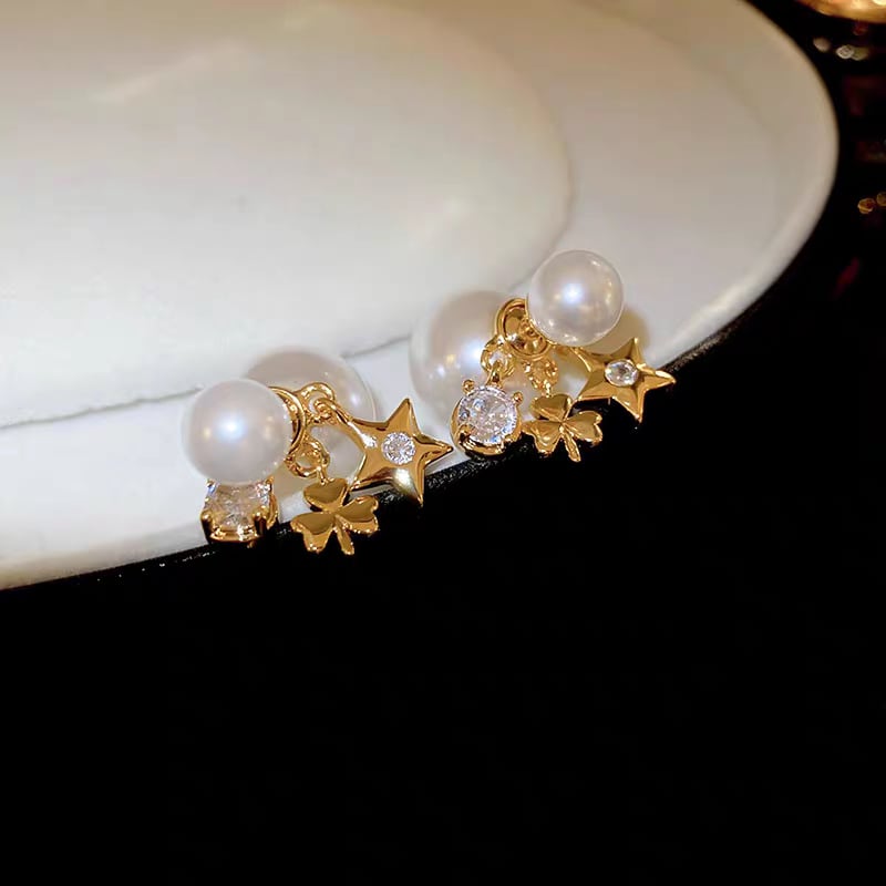 S925 zirconia clover pearl catch pierce ジルコニアクローバーパールキャッチピアス