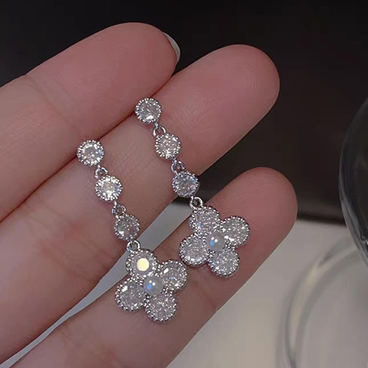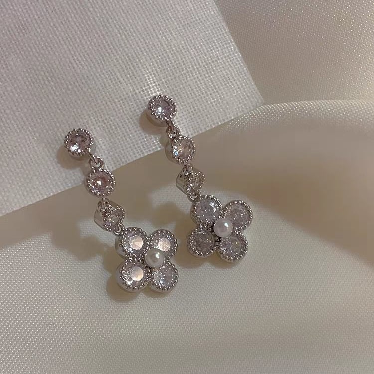 S925 zirconia silver flower pierce ジルコニアシルバーフラワーピアス