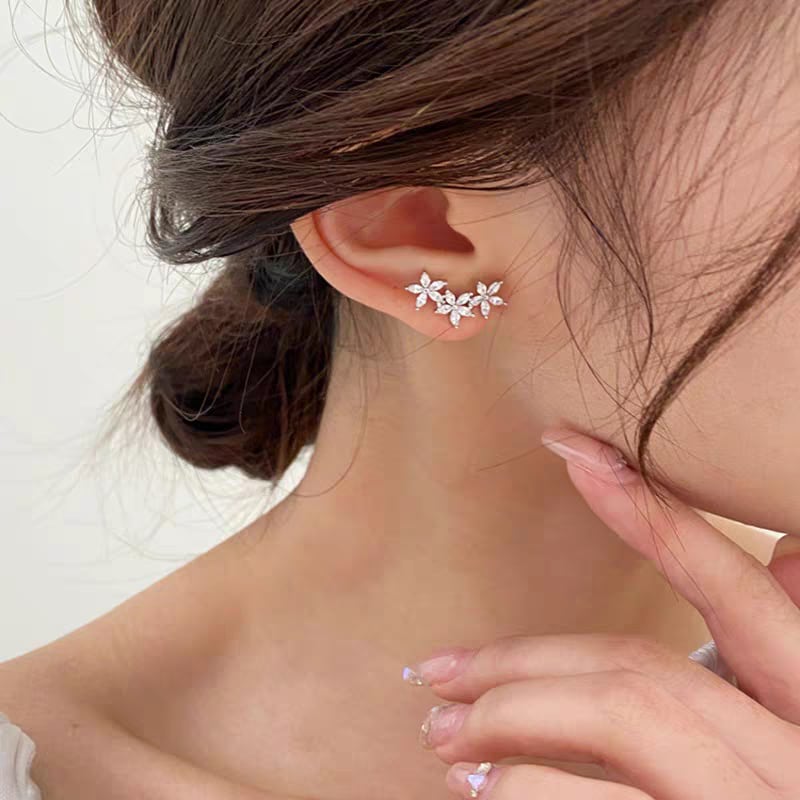 可憐な花が連なるデザインで、耳元に上品な輝きと華やかさをプラスします。