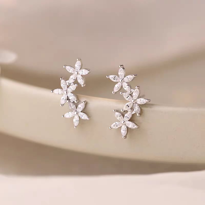 S925 zirconia three flower pierce ジルコニアスリーフラワーピアス