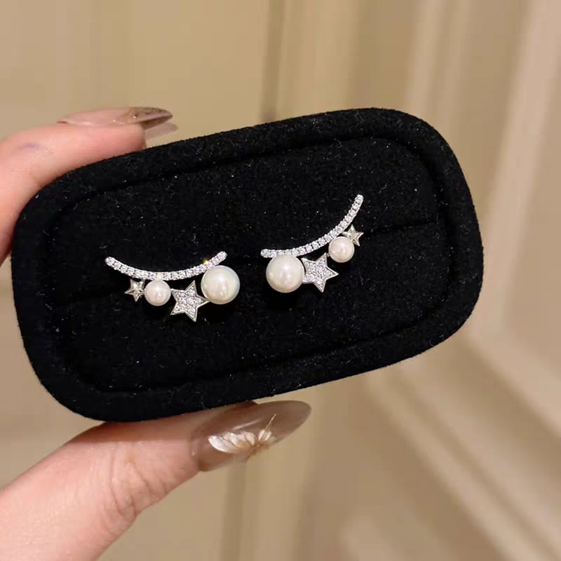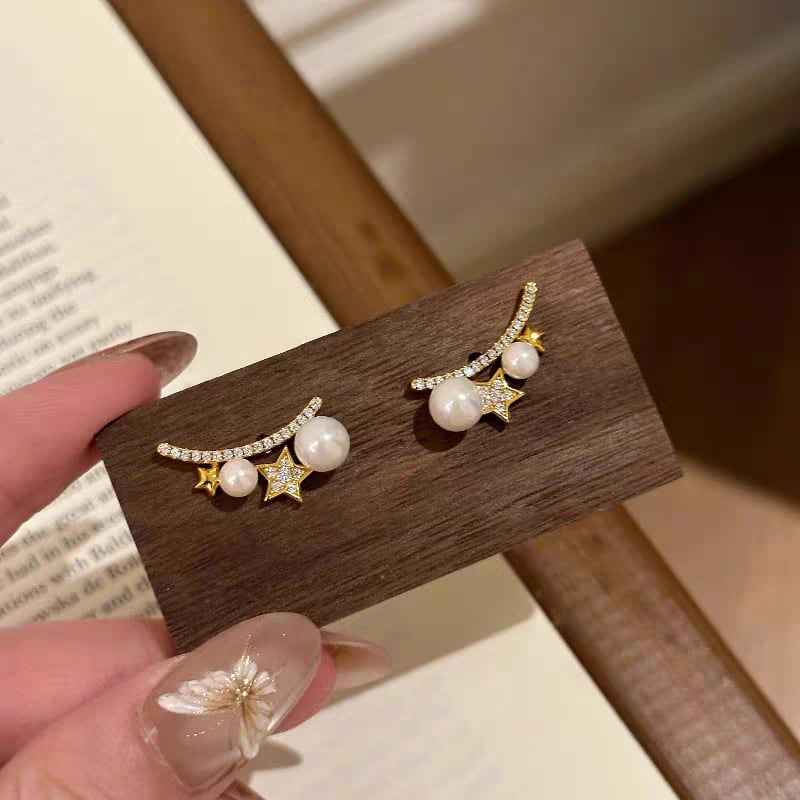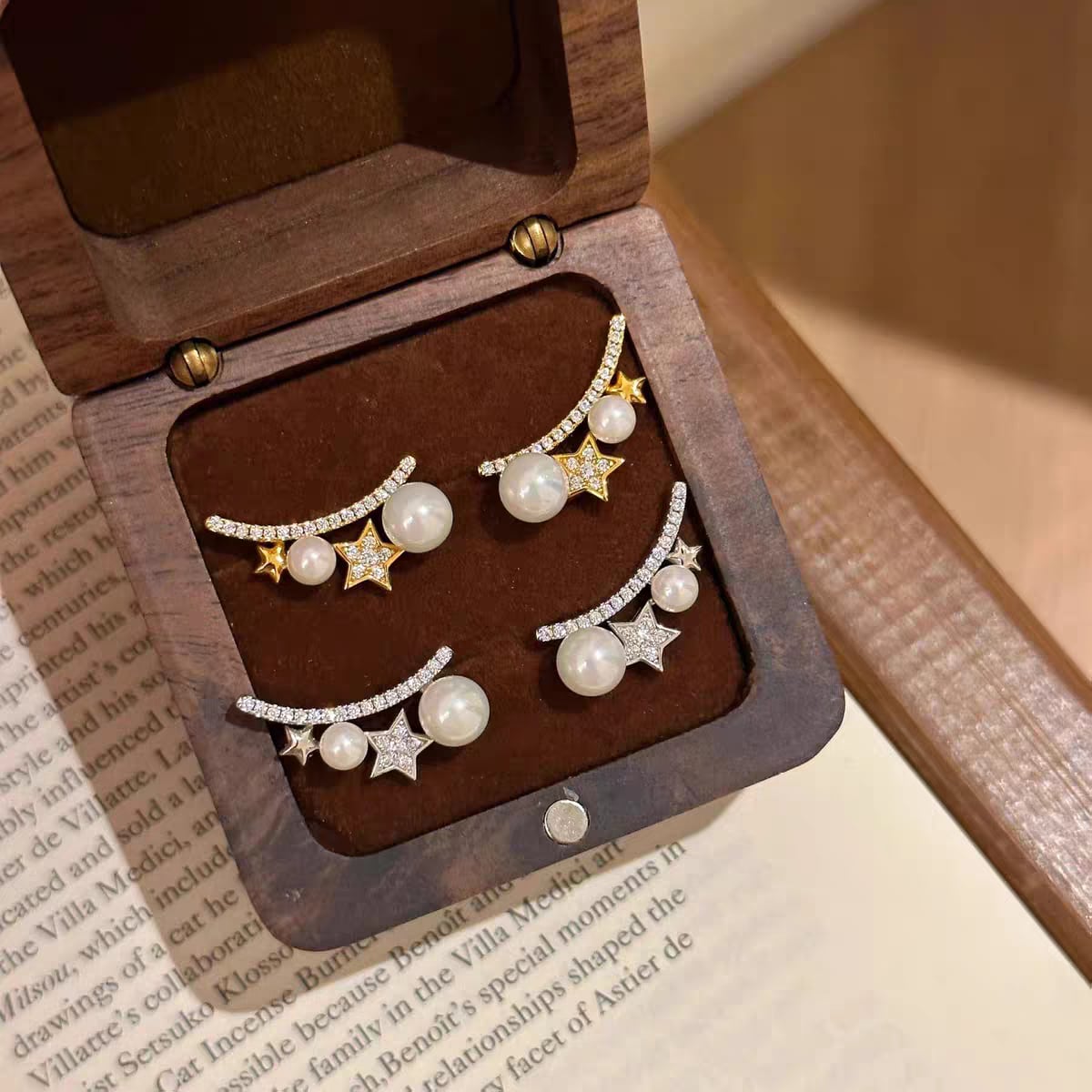 パールとスターモチーフを組み合わせた、華やかで可憐なデザインのジュエリーです。