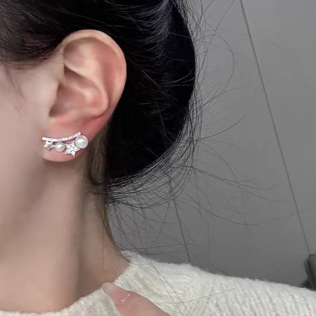 緩やかなカーブにセッティングされた繊細なストーンが耳元に上品な輝きを添え、星モチーフがさりげないアクセントに。