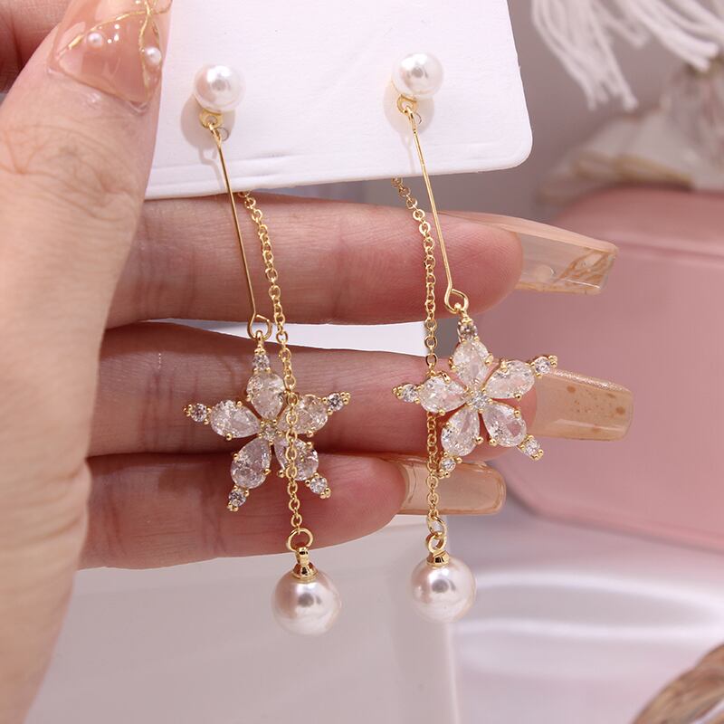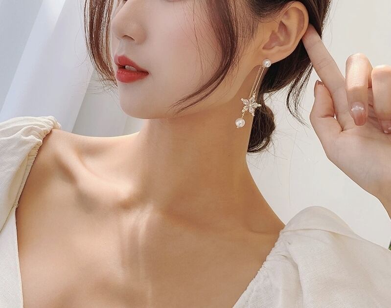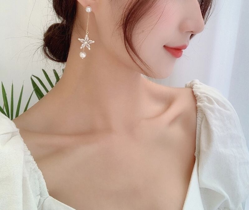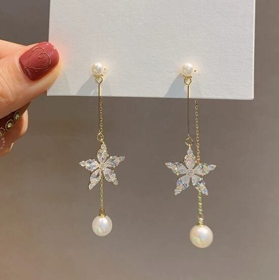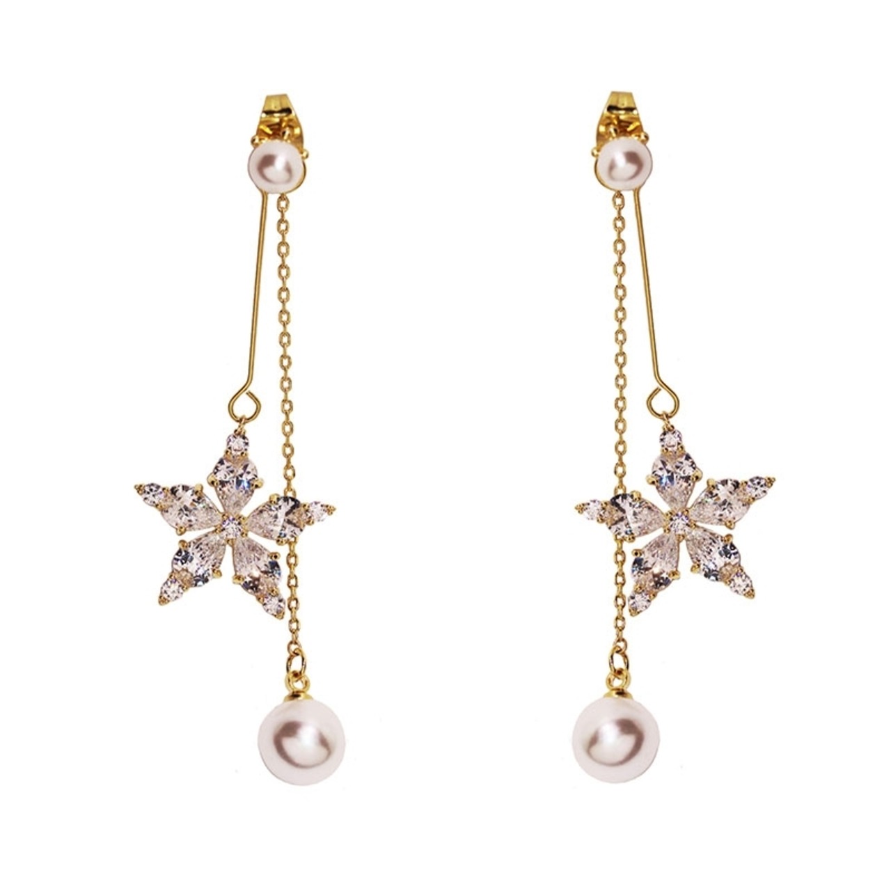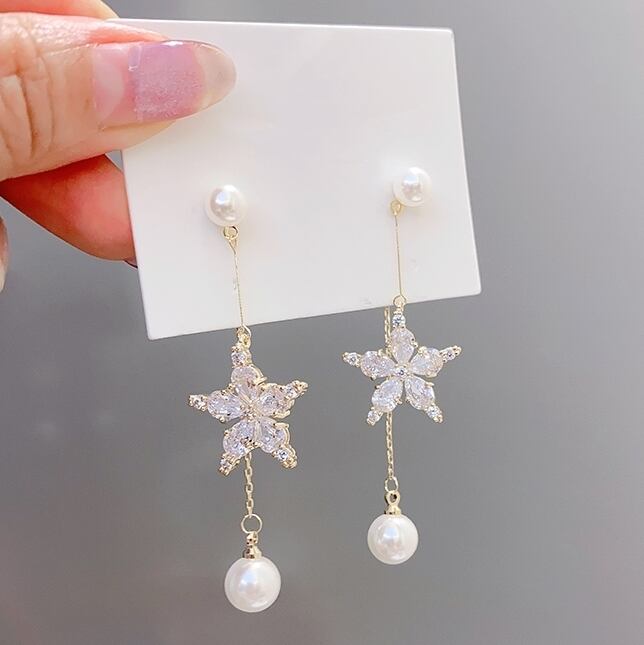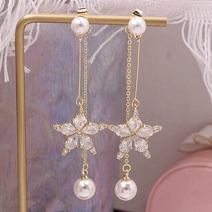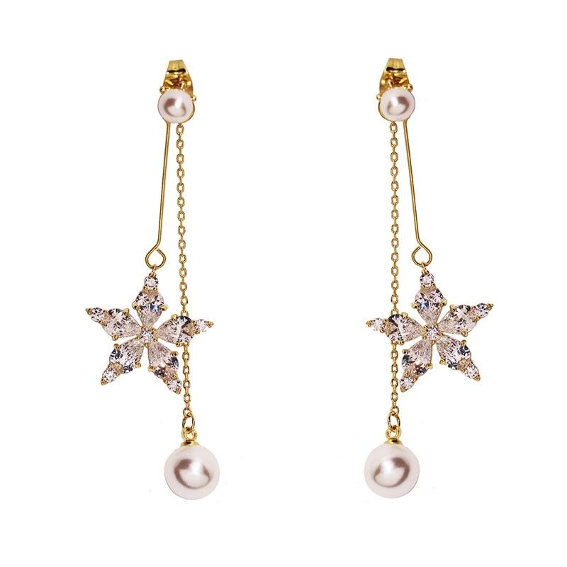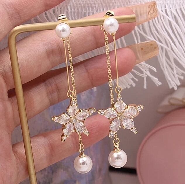 S925 zirconia 2way star bijou chain pierce ジルコニアスタービジューチェーンピアス