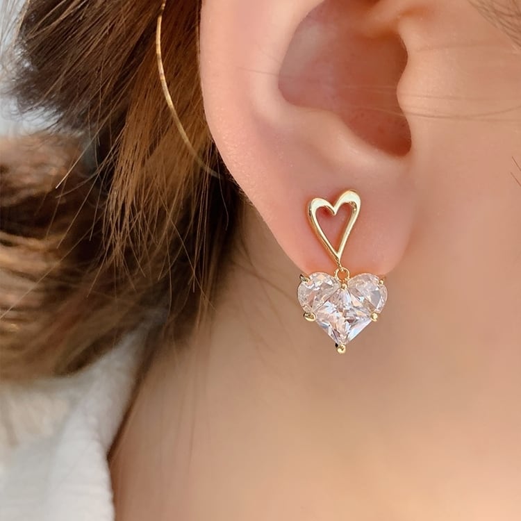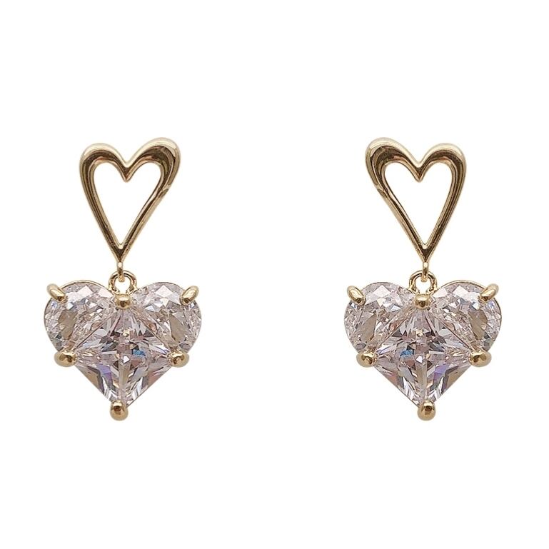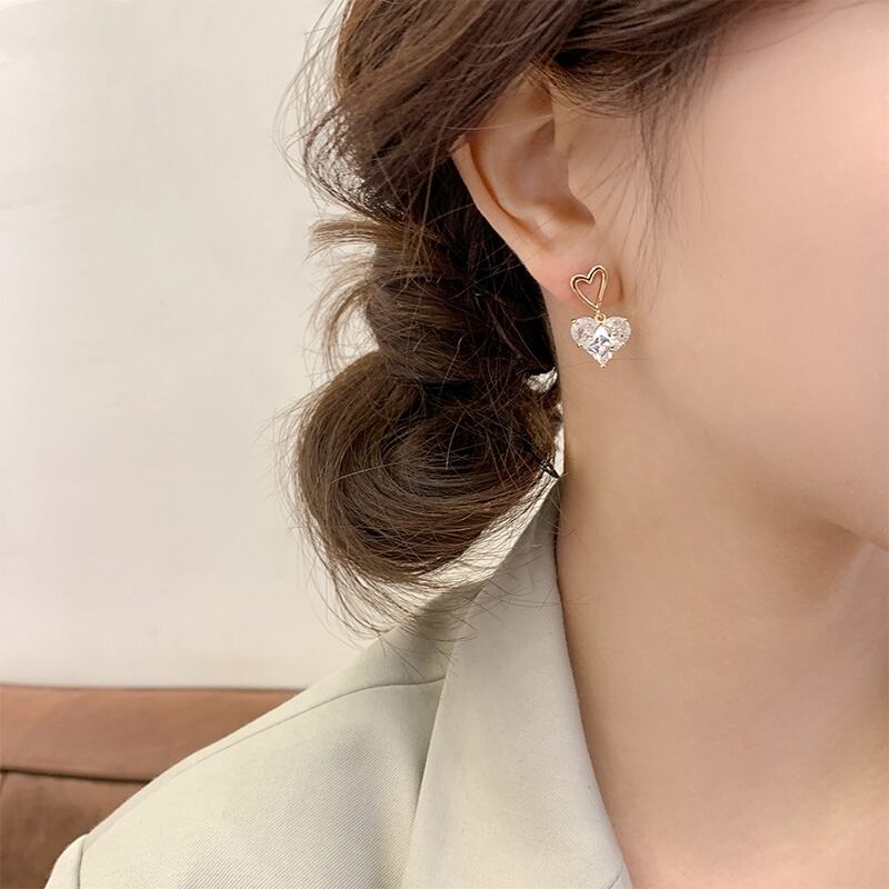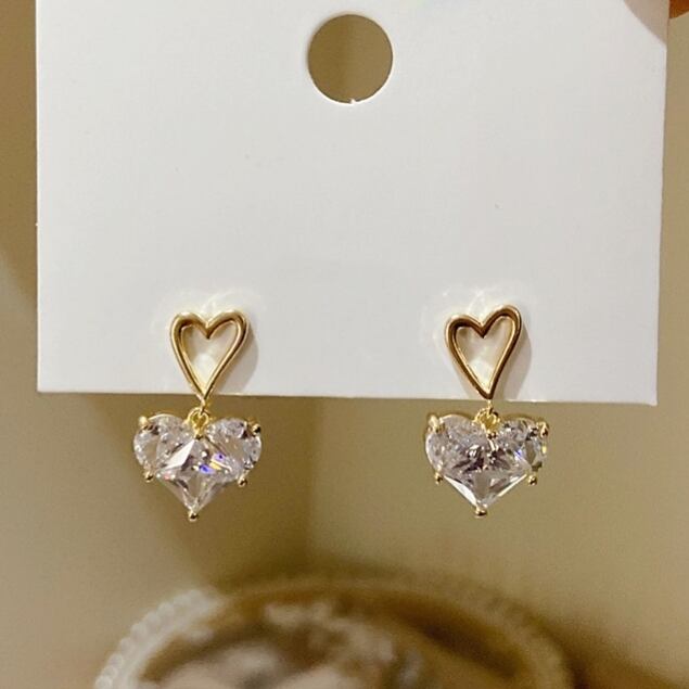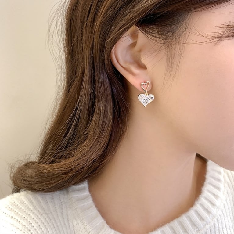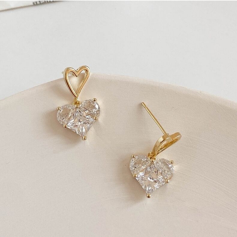 大粒の高品質ハートキュービックジルコニアが揺れる度に輝くピアスです。