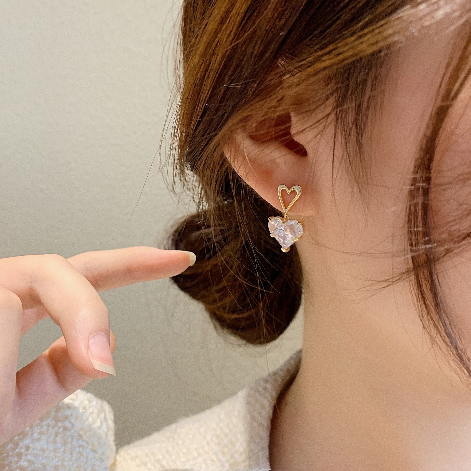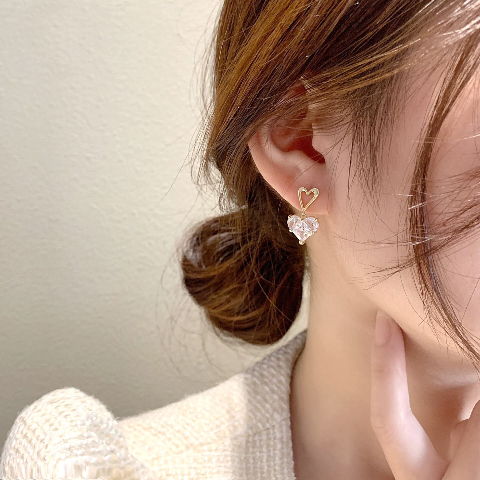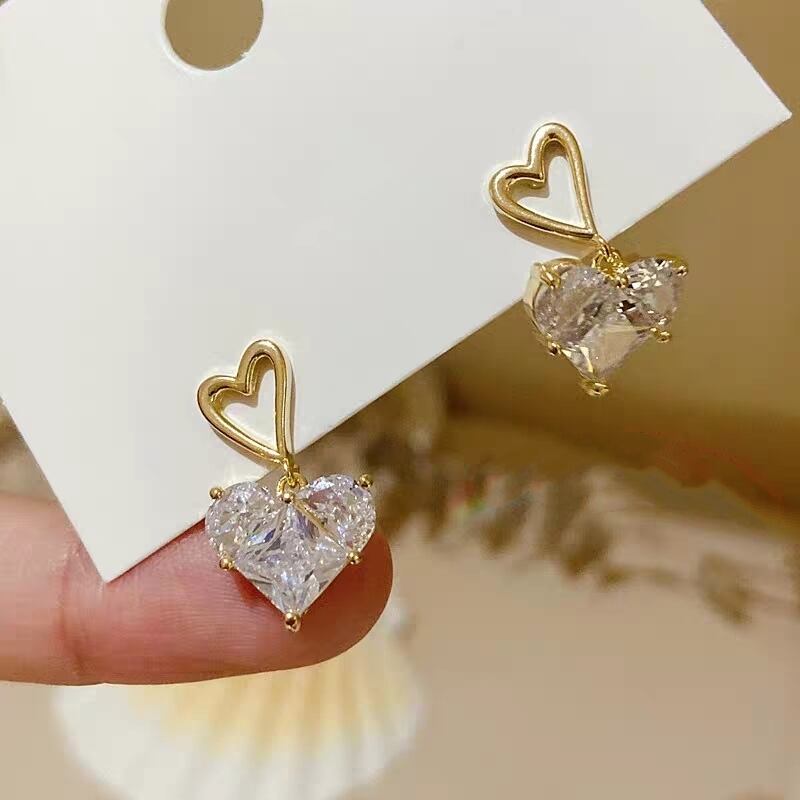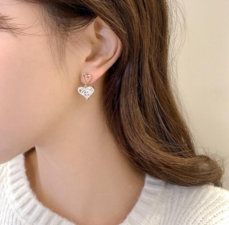 大粒の高品質ハートキュービックジルコニアが揺れる度に輝くピアスです。