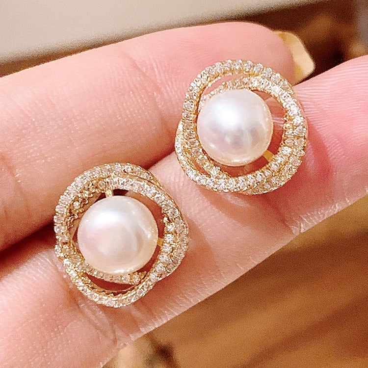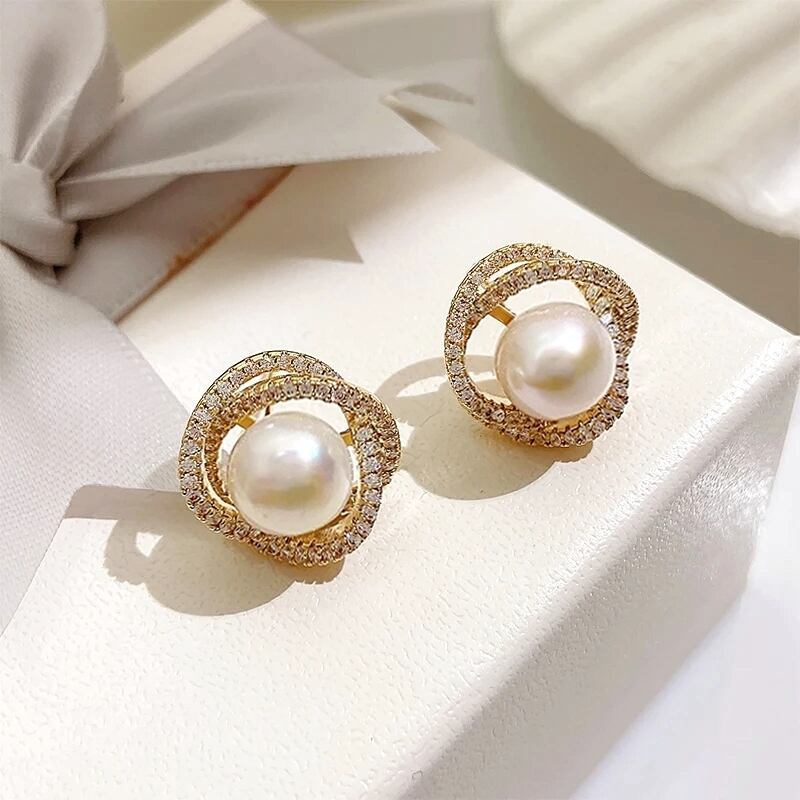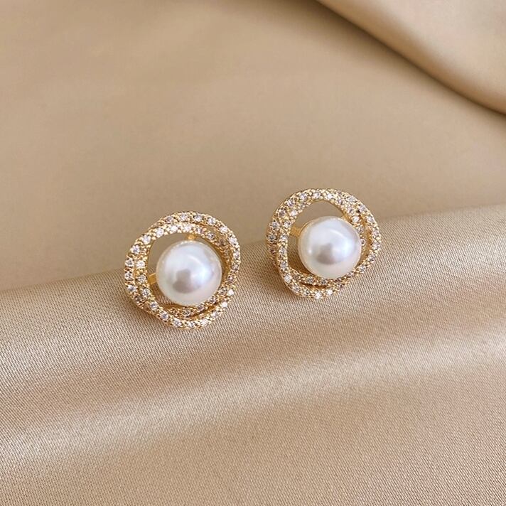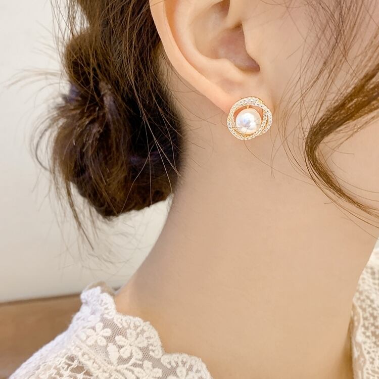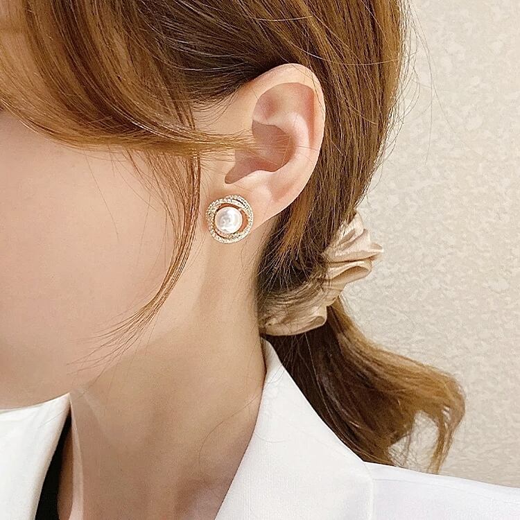 1粒パールが可愛いスタッドピアス