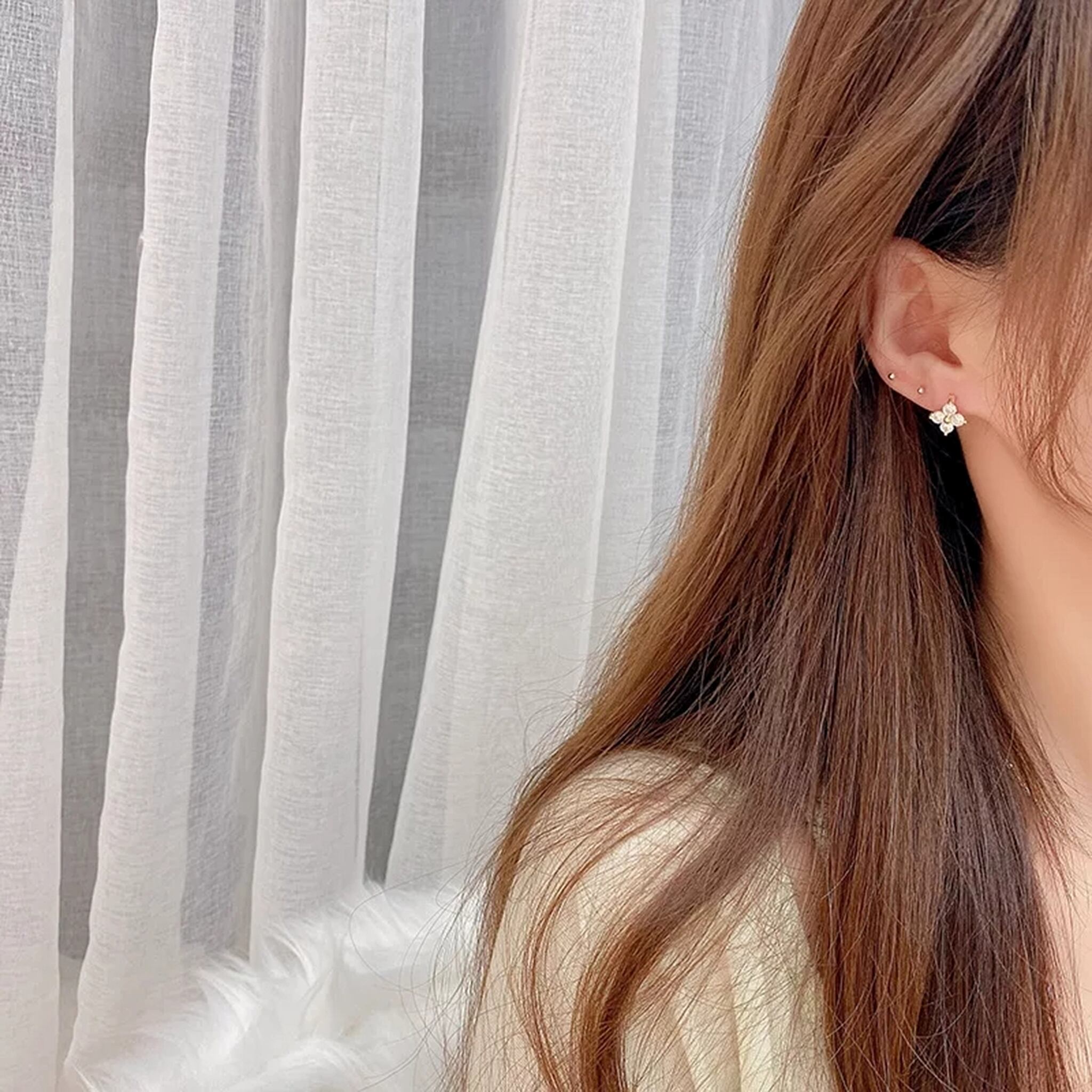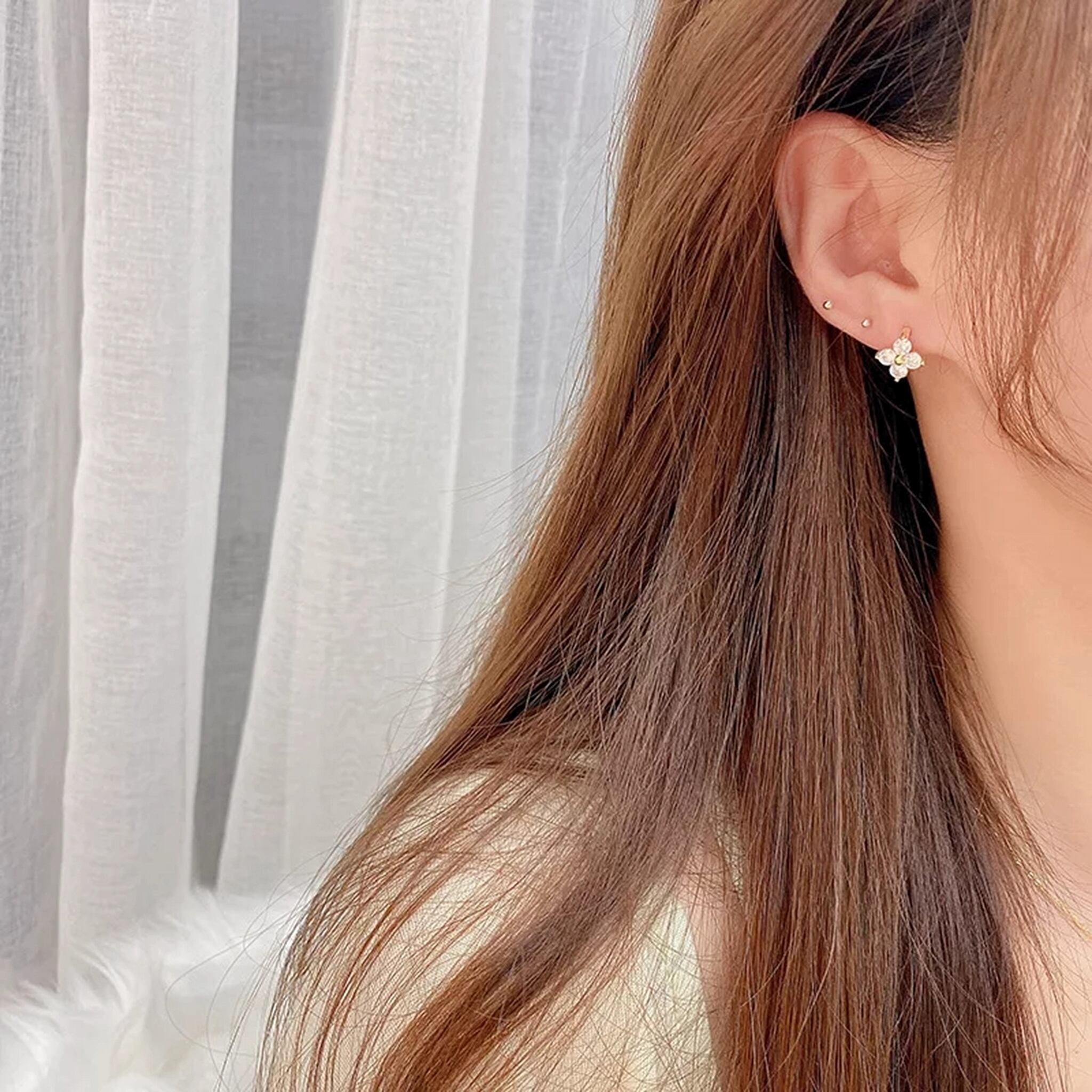 14kgp zirconia mini flower ring pierce ジルコニアミニフラワーリングピアス