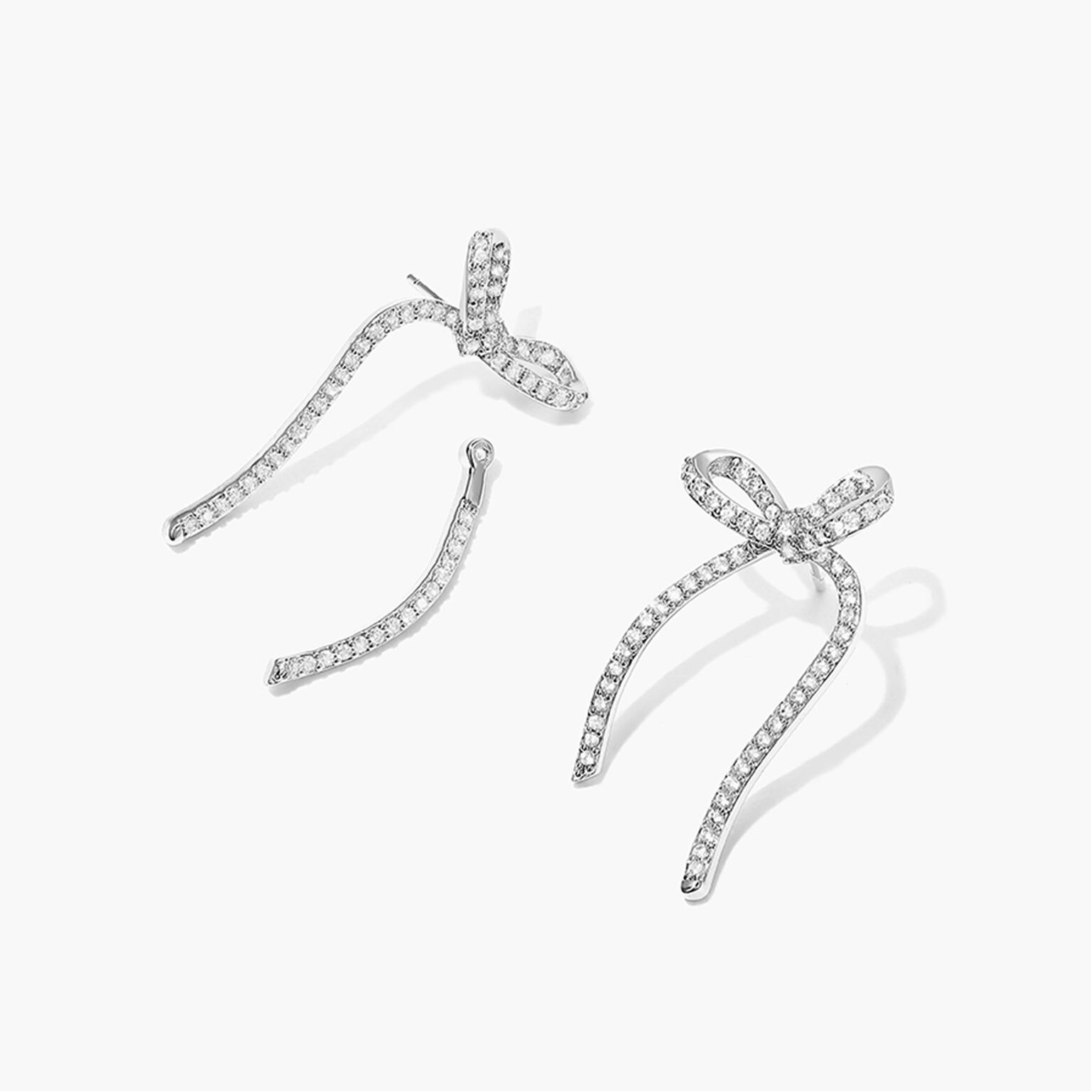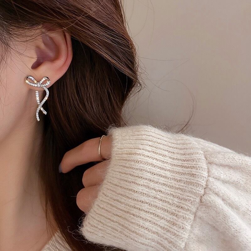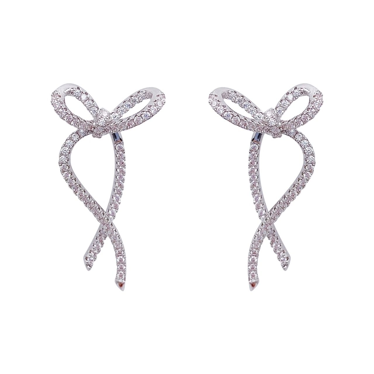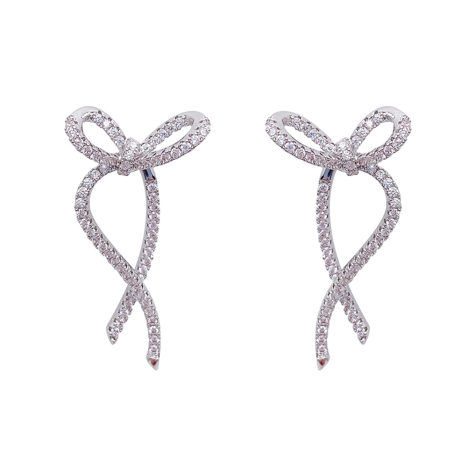 キュービックジルコニア輝くシルバーリボンピアス