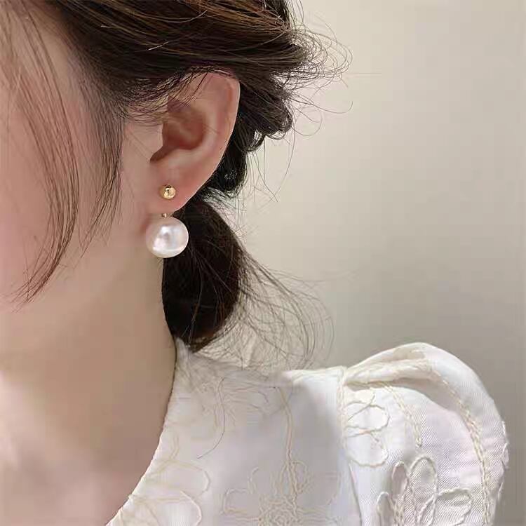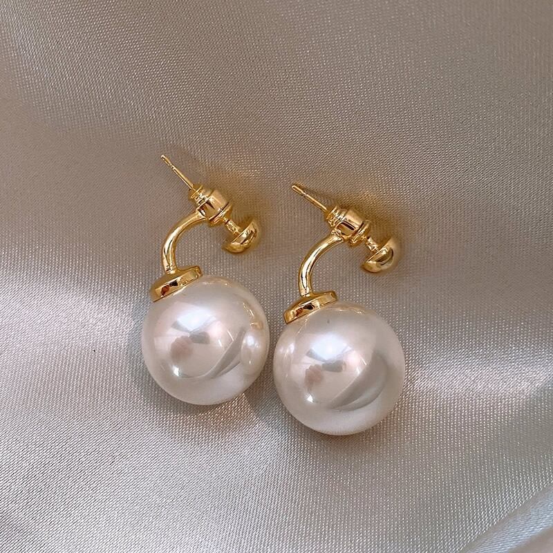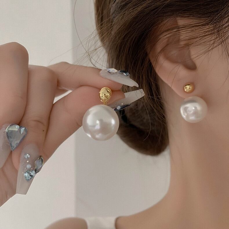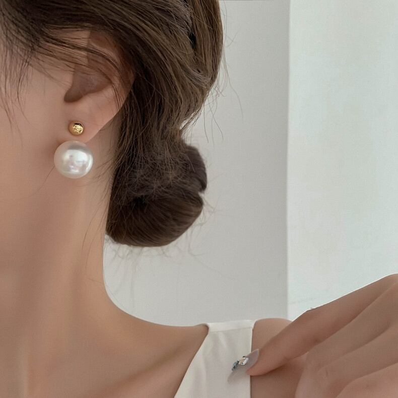 存在感のある大きな1粒パールが印象的なバックキャッチピアス
