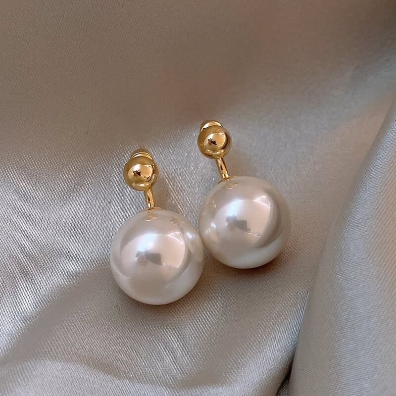 上品な輝きを放つ大きなパールが、耳元を美しく彩ります。