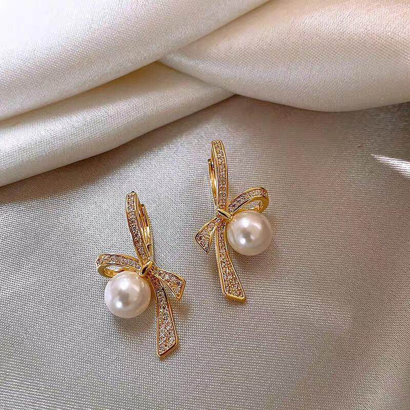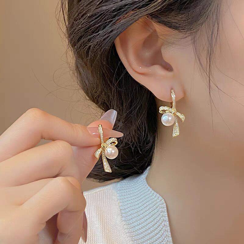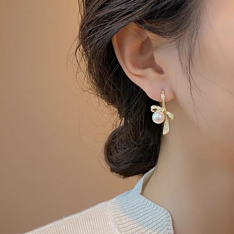 ribbon knot pearl pierce リボンノットパールピアス