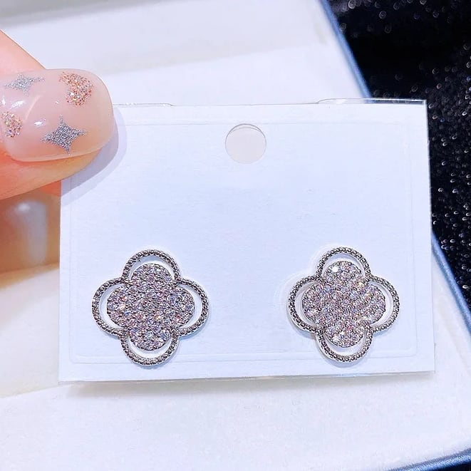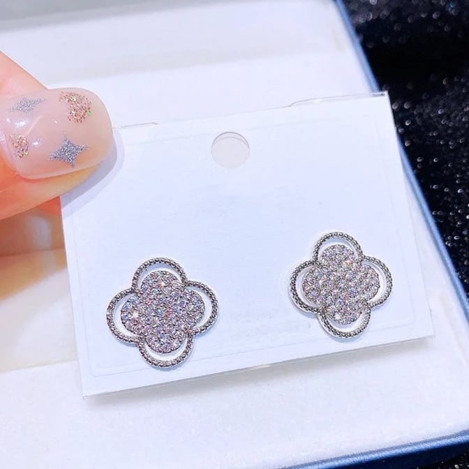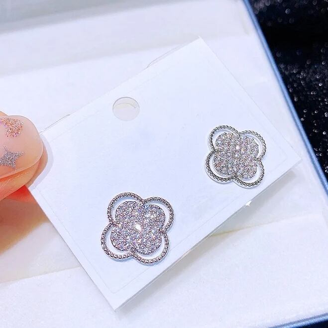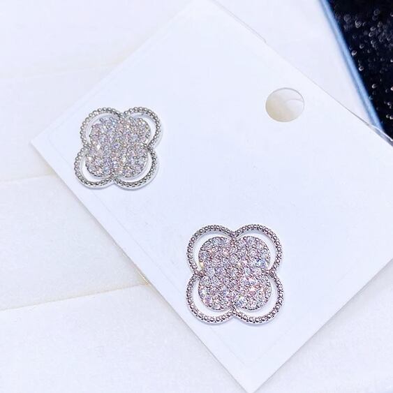 動くたびに輝くキュービックジルコニアを贅沢に使用したクローバーモチーフピアス
