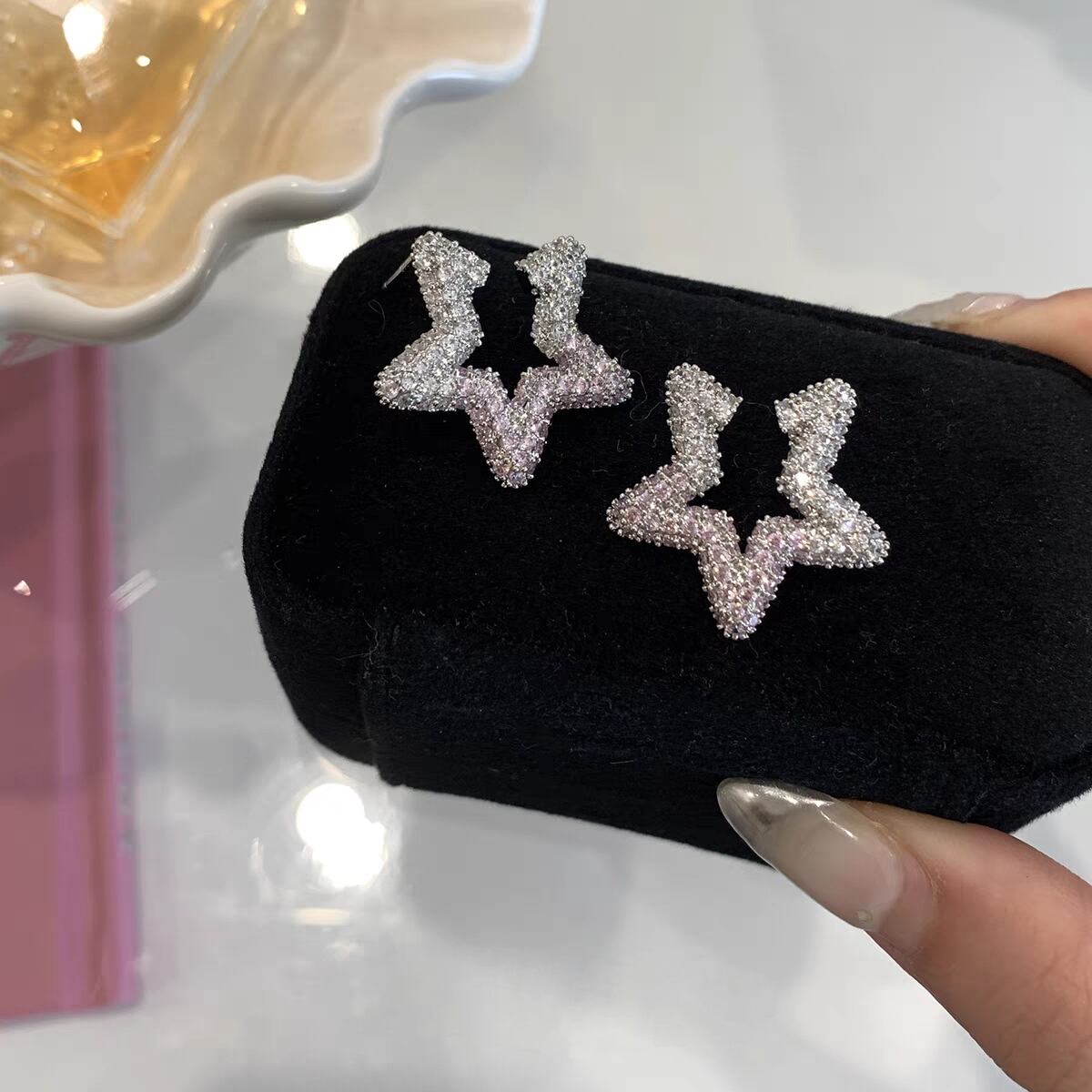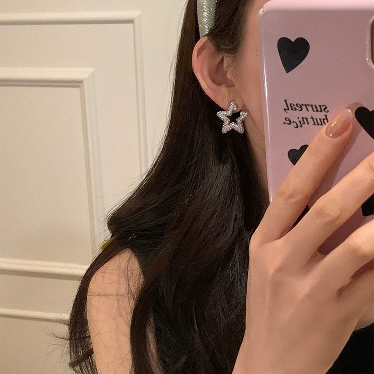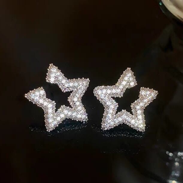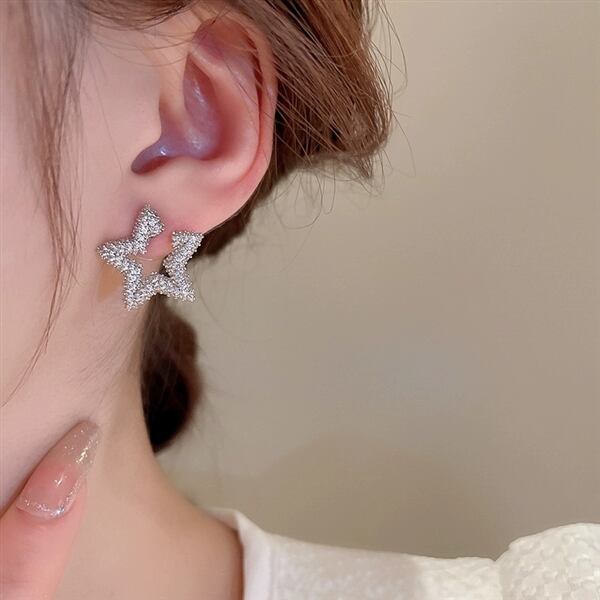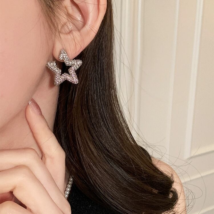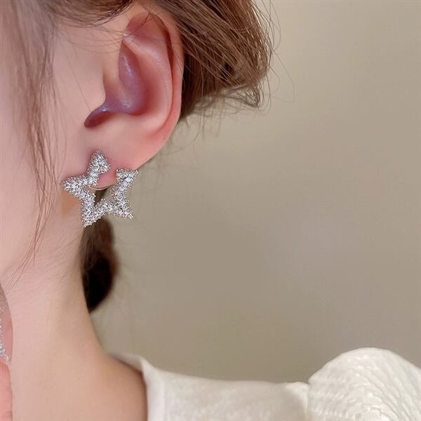 動く度に輝くキュービックジルコニアをふんだんに使用したパヴェスターモチーフピアス