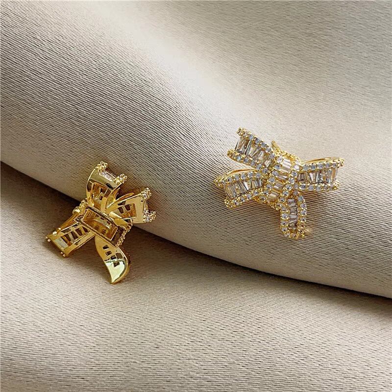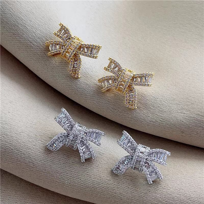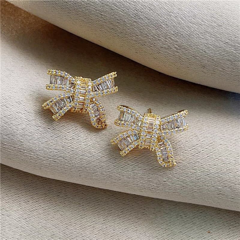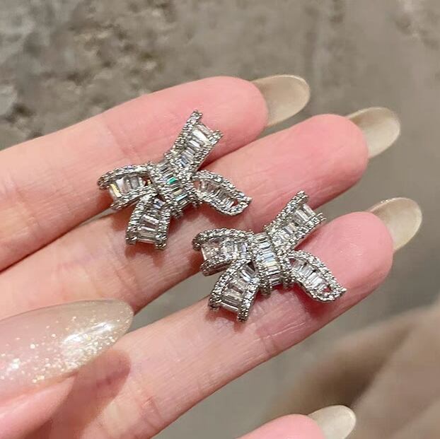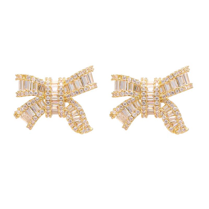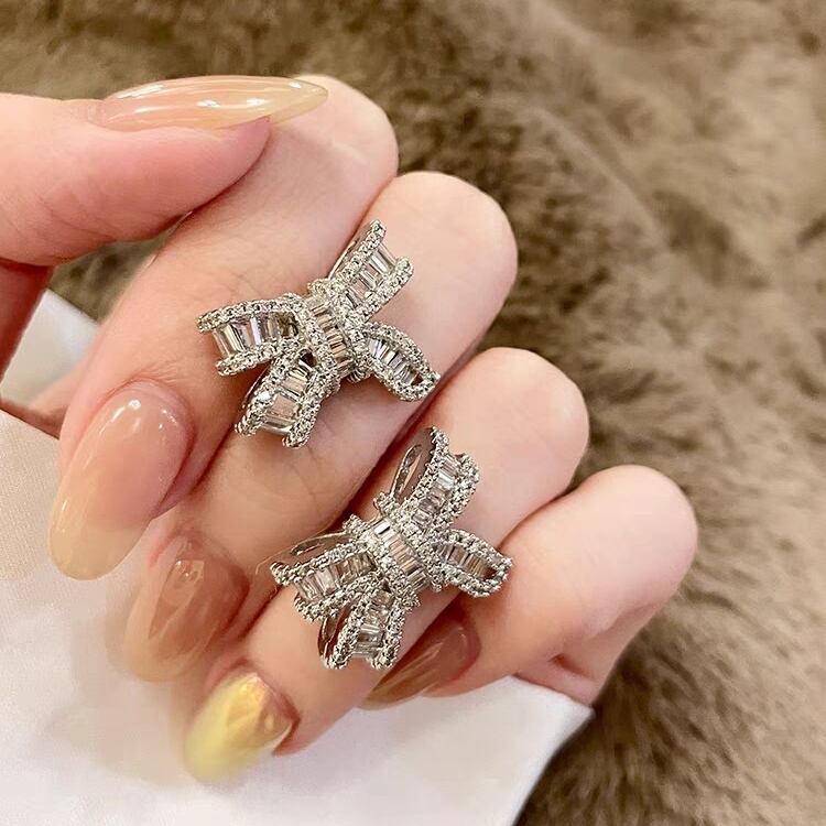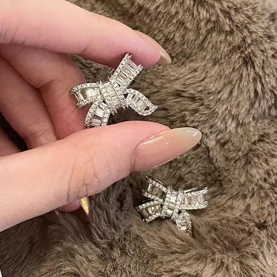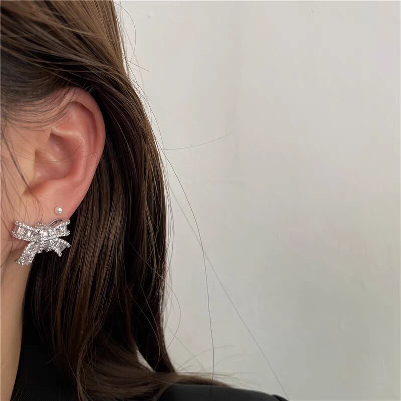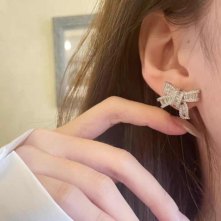 キュービックジルコニアをふんだんに使用したリボンモチーフピアス