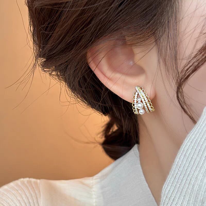 S925 zirconia race pearl pierce ジルコニアレースパールピアス